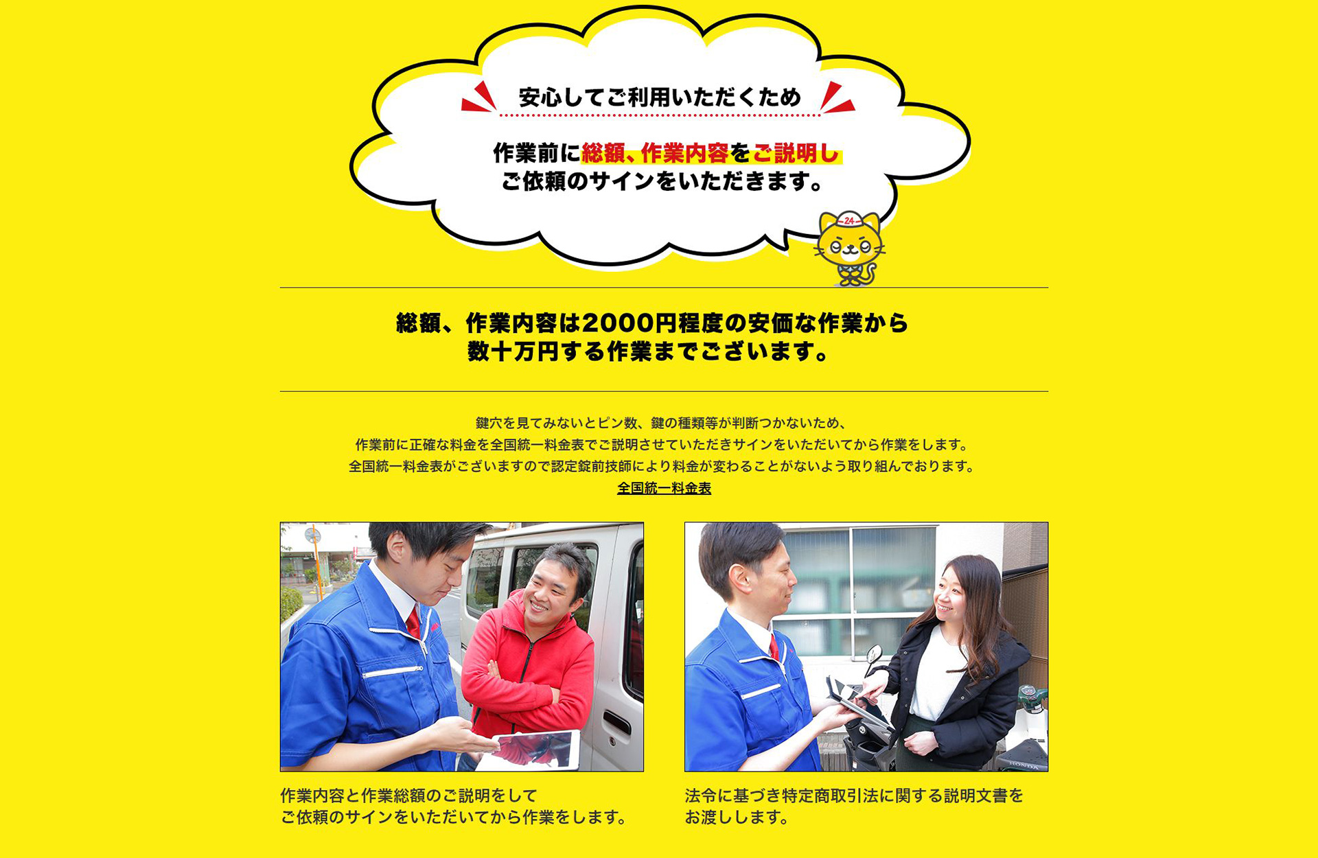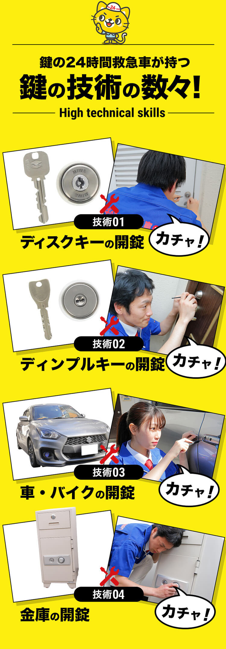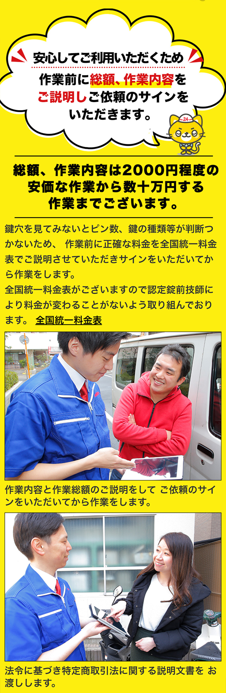 大正区で「カギの出張24時間」が提供する信頼の鍵サービス。常にお客様のニーズに応えるため、作業前の詳細な説明と安心価格で対応します。大正区で鍵の迅速な解決を求める方は、当店の親切丁寧なサービスを体験してください。