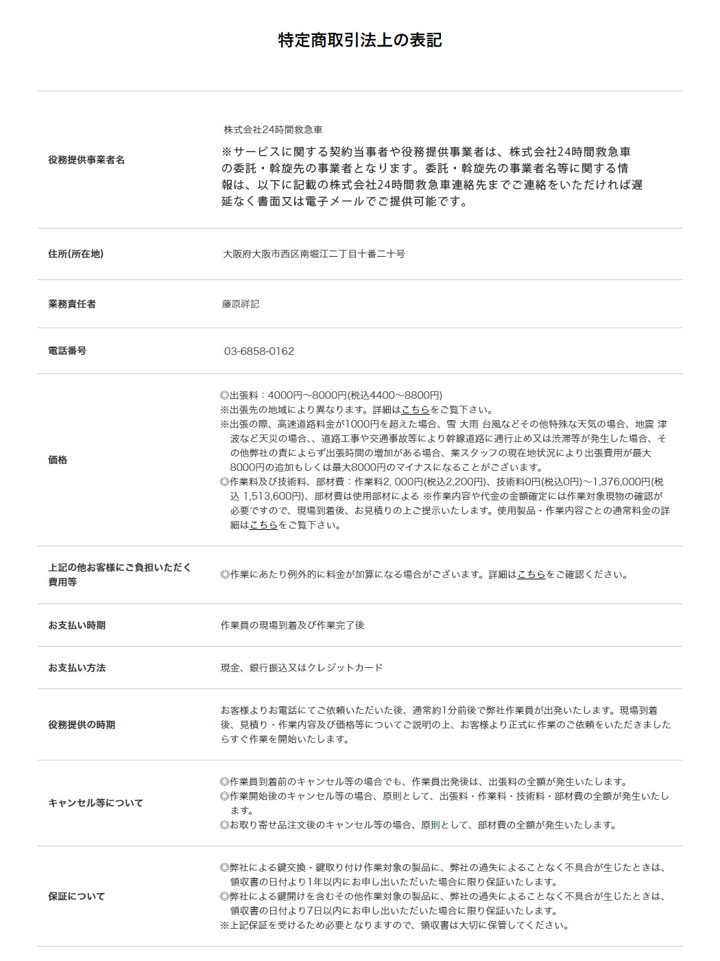 お客様よりお電話にてご依頼いただいた後、通常約1分前後で弊社作業員が出発いたします。現場到着後、見積り・作業内容及び価格等についてご説明の上、お客様より正式に作業のご依頼をいただきましたらすぐ作業を開始いたします。 |